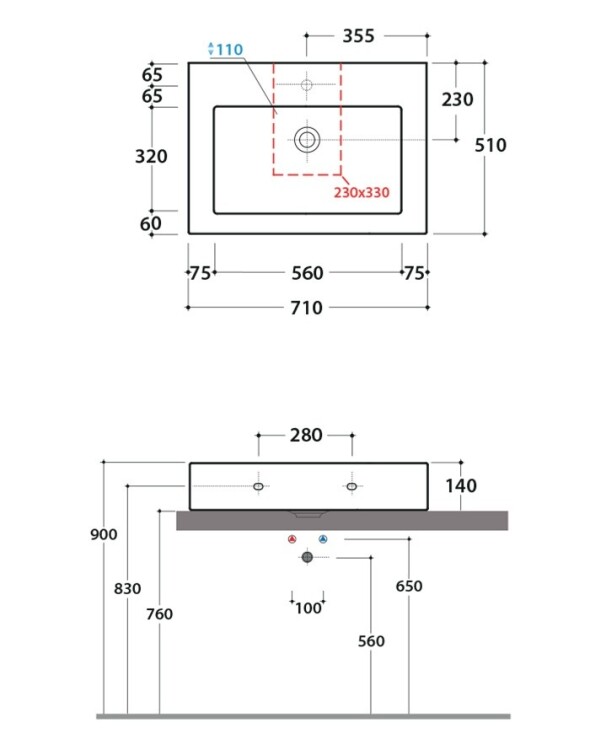 | Отверстия под смеситель | 1 промаркированное |