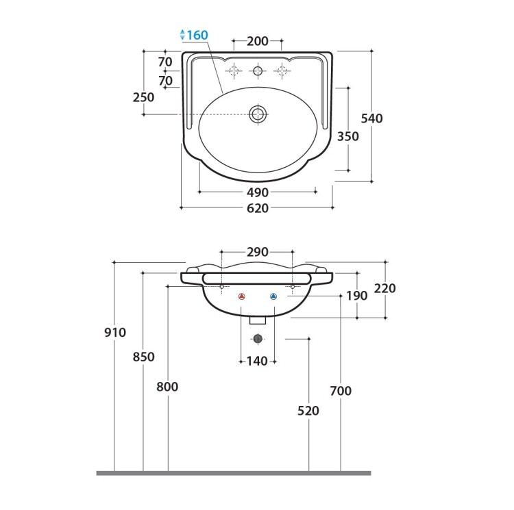 Раковина, Globo, Paestum, ширина, мм-620, глубина, мм-540, высота, мм-220, тип установки-подвесной/с пьедесталом, отверстия для смесителя-1 сквозное, 2 промаркированных, с переливом, материал-керамика, вид грязеотталкивающего покрытия-CERASLIDE, BATAFORM, крепления в комплекте, цвет-белый Раковина, Globo, Paestum, шгв 620*540*220, отверстия для смесителя-1 сквозное, 2 промаркированных, CERASLIDE, BATAFORM, цвет-белый