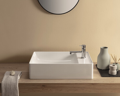 Раковина, Globo, T-EDGE, ширина, мм-550, глубина, мм-350, высота, мм-140, тип установки-накладной (настольный), отверстия для смесителя-1 промаркированное, без перелива, материал-керамика, вид грязеотталкивающего покрытия-CERASLIDE, BATAFORM, без креплений, цвет-белый Раковина, Globo, T-EDGE, шгв 550*350*140, отверстия для смесителя-1 промаркированное, CERASLIDE, BATAFORM, цвет-белый