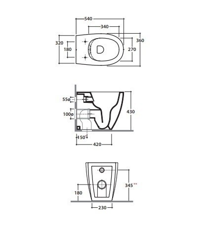 | Бачок | необходима система инсталляции, скрытый бачок |