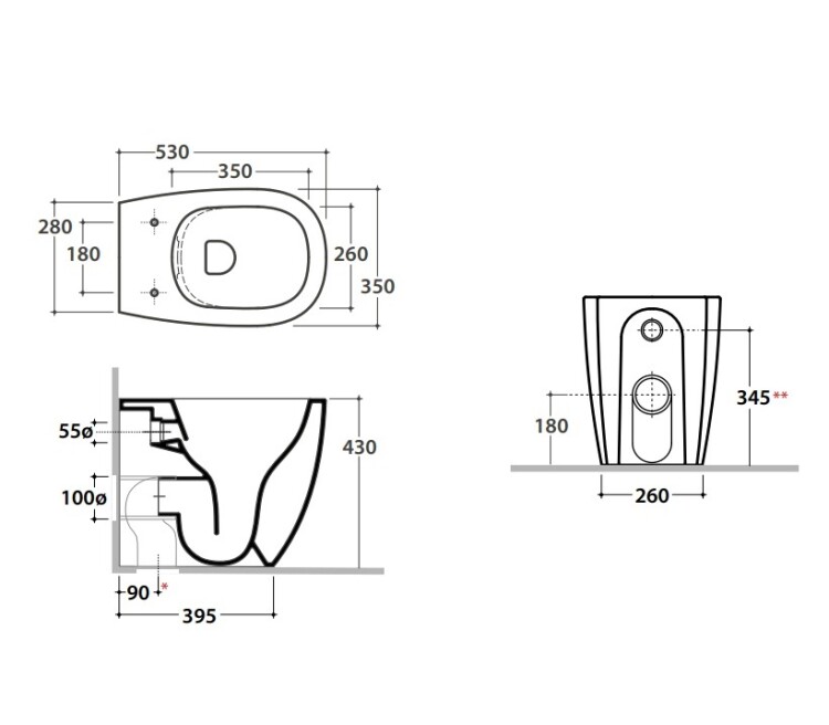 | Бачок | необходима система инсталляции, скрытый бачок |