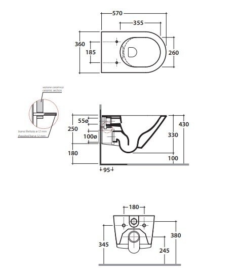 Унитаз, Globo, FORTY3, безободковый (с открытым смывным краем), тип установки-подвесной, ширина, мм-360, глубина, мм-570, высота, мм-360, форма чаши-овальная, выпуск-горизонтальный, материал-керамика, сиденье-необходимо заказать, вид грязеотталкивающего покрытия-CERASLIDE, BATAFORM, крепления в комплекте, цвет-белый Унитаз, Globo, FORTY3, подвесной, шгв 360*570*360, CERASLIDE, BATAFORM, цвет-белый