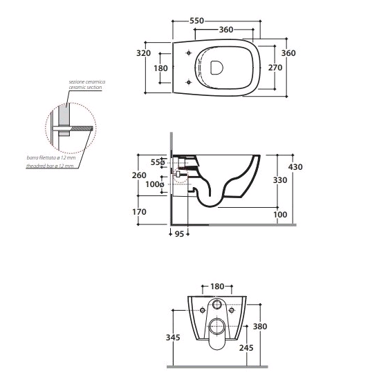 Унитаз, Globo, GENESIS, безободковый (с открытым смывным краем), тип установки-подвесной, ширина, мм-360, глубина, мм-550, высота, мм-330, форма чаши-прямоугольная, выпуск-горизонтальный, материал-керамика, сиденье-необходимо заказать, вид грязеотталкивающего покрытия-CERASLIDE, BATAFORM, крепления в комплекте, цвет-Ghiacci Унитаз, Globo, GENESIS, подвесной, шгв 360*550*330, CERASLIDE, BATAFORM, цвет-Ghiaccio
