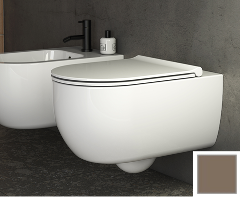 Унитаз, Globo, MODE, безободковый (с открытым смывным краем), тип установки-подвесной, ширина, мм-340, глубина, мм-530, высота, мм-330, форма чаши-овальная, выпуск-горизонтальный, материал-керамика, сиденье-необходимо заказать, вид грязеотталкивающего покрытия-CERASLIDE, BATAFORM, крепления в комплекте, цвет-Castagno Унитаз, Globo, MODE, подвесной, шгв 340*530*330, CERASLIDE, BATAFORM, цвет-Castagno