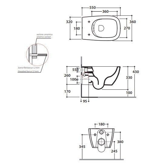 Унитаз, Globo, GENESIS, безободковый (с открытым смывным краем), тип установки-подвесной, ширина, мм-360, глубина, мм-550, высота, мм-330, форма чаши-прямоугольная, выпуск-горизонтальный, материал-керамика, сиденье-необходимо заказать, вид грязеотталкивающего покрытия-CERASLIDE, BATAFORM, крепления в комплекте, цвет-белый Унитаз, Globo, GENESIS, подвесной, шгв 360*550*330, CERASLIDE, BATAFORM, цвет-белый