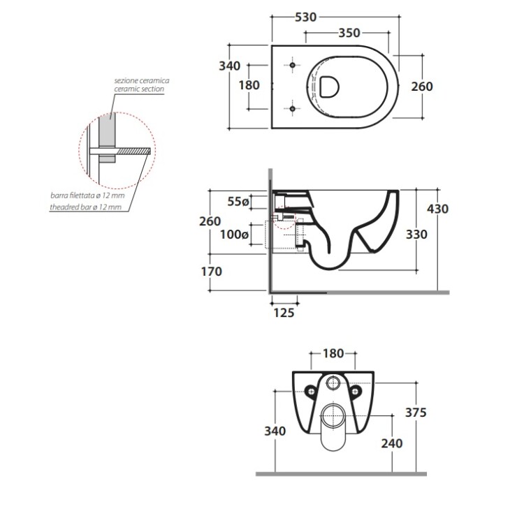 Унитаз, Globo, MODE, безободковый (с открытым смывным краем), тип установки-подвесной, ширина, мм-340, глубина, мм-530, высота, мм-330, форма чаши-овальная, выпуск-горизонтальный, материал-керамика, сиденье-необходимо заказать, вид грязеотталкивающего покрытия-CERASLIDE, BATAFORM, крепления в комплекте, цвет-белый Унитаз, Globo, MODE, подвесной, шгв 340*530*330, CERASLIDE, BATAFORM, цвет-белый