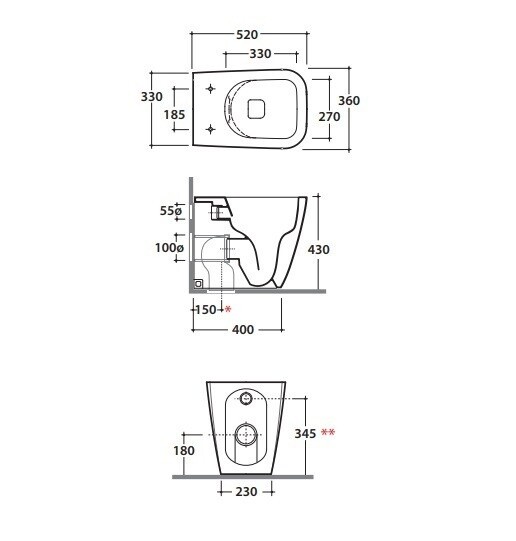 | Бачок | необходима система инсталляции, скрытый бачок |