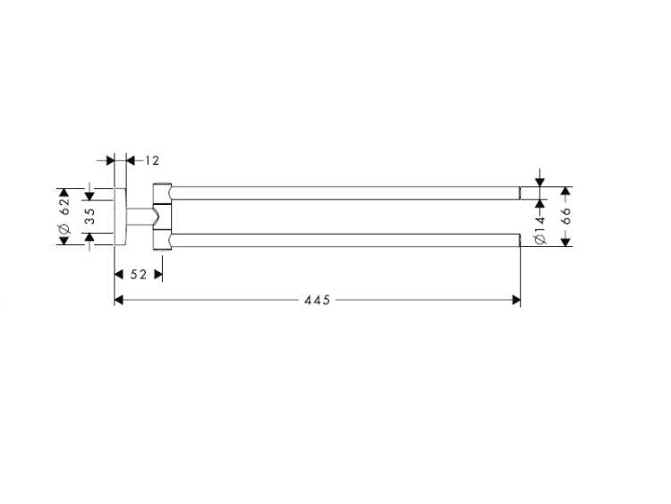 Полотенцедержатель, Hansgrohe, Logis, двойной, поворотный, ширина, мм-445, глубина, мм-62, высота, мм-66, настенный, материал-латунь, материал держателя-металл, крепеж-есть, цвет-хром Полотенцедержатель, Hansgrohe, Logis, шгв 445*62*66, цвет-хром