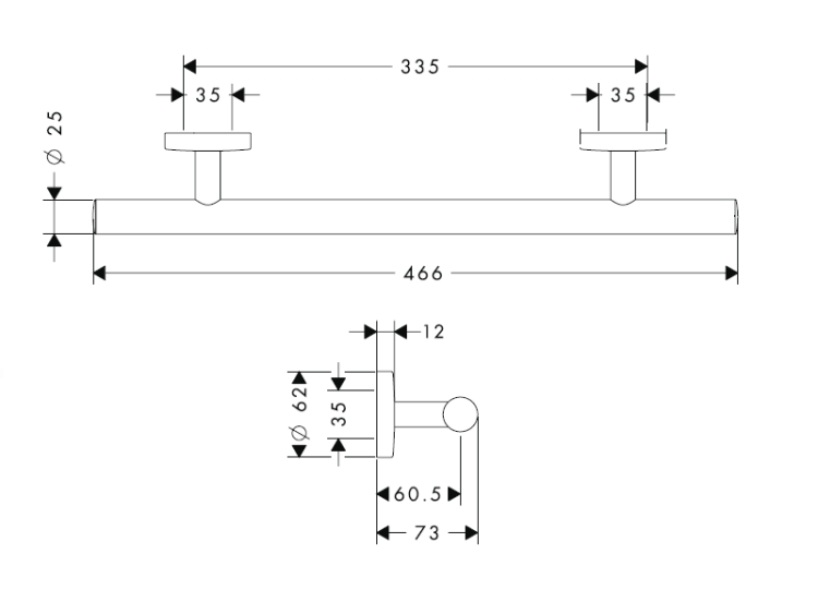 Поручень, Hansgrohe, Logis, ширина, мм-466, глубина, мм-73, высота, мм-62, настенный, материал-латунь, материал держателя-металл, крепеж-есть, цвет-хром Поручень, Hansgrohe, Logis, шгв 466*73*62, цвет-хром