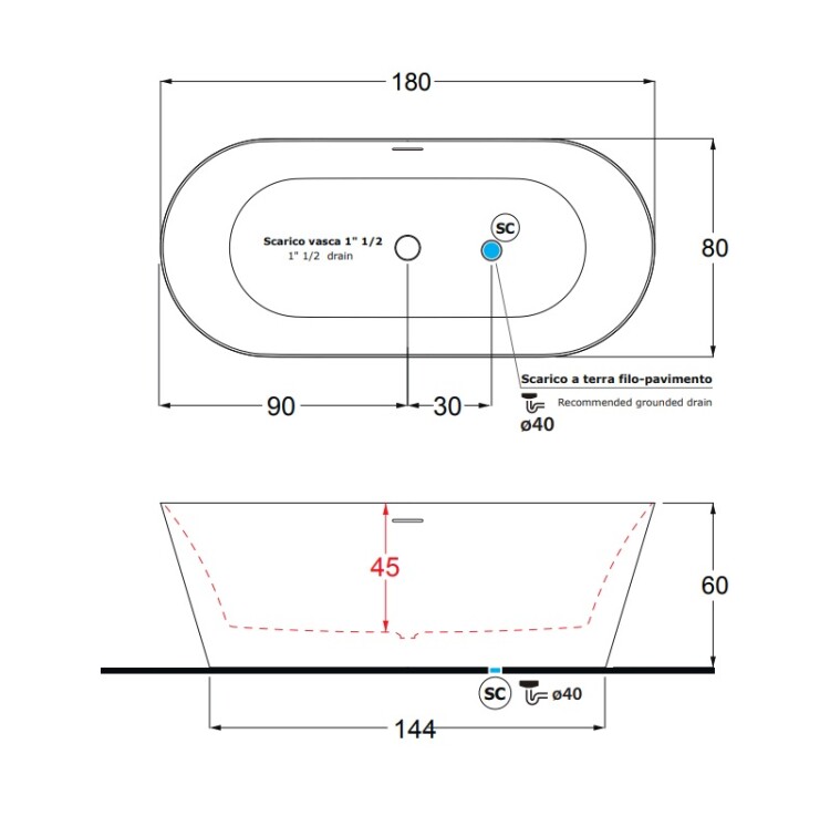 Ванна, Treesse, Inka, ширина, мм-1800, глубина, мм-800, высота, мм-600, водоизмещение (л)-310, тип установки-отдельностоящий, форма-овальная, панель-есть, слив-перелив-в комплекте, материал-акрил, цвет-белый Ванна, Treesse, Inka, шгв 1800*800*600, цвет-белый