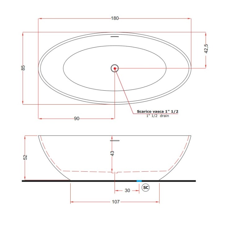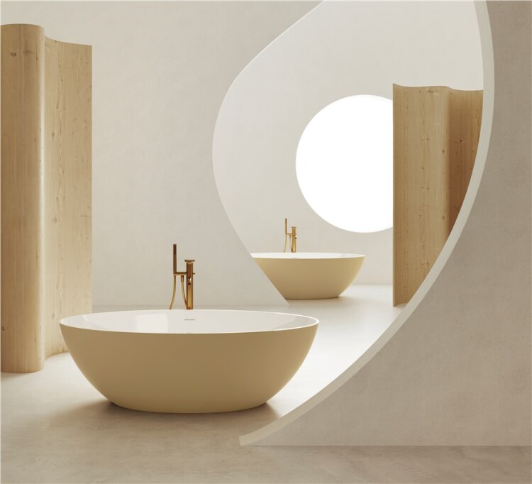 Ванна, Treesse, Carezza, ширина, мм-1800, глубина, мм-850, высота, мм-520, водоизмещение (л)-306, тип установки-отдельностоящий, форма-овальная, панель-есть, слив-перелив-в комплекте, материал-искусственный камень, цвет-белый матовый Ванна, Treesse, Carezza, шгв 1800*850*520, цвет-белый матовый