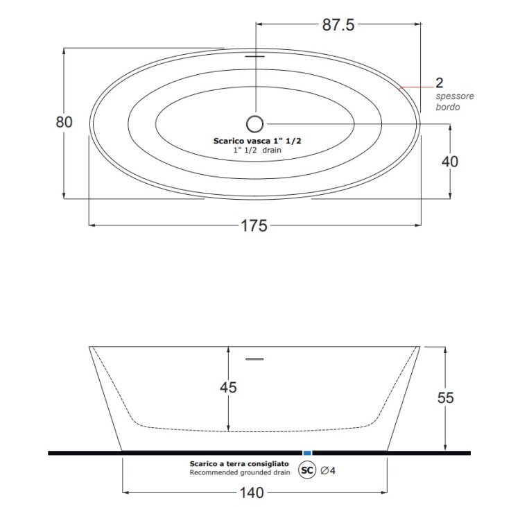 Ванна, Treesse, Alma, ширина, мм-1750, глубина, мм-800, высота, мм-550, водоизмещение (л)-255, тип установки-отдельностоящий, форма-овальная, панель-есть, слив-перелив-в комплекте, материал-искусственный камень, цвет-белый матовый Ванна, Treesse, Alma, шгв 1750*800*550, цвет-белый матовый