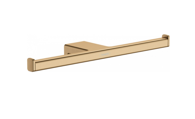 Бумагодержатель, Hansgrohe, AddStoris, без крышки, двойной, ширина, мм-300, глубина, мм-78, высота, мм-21, тип установки-настенный, крепления в комплекте, цвет-шлифованная бронза Бумагодержатель, Hansgrohe, AddStoris, шгв 300*78*21, цвет-шлифованная бронза