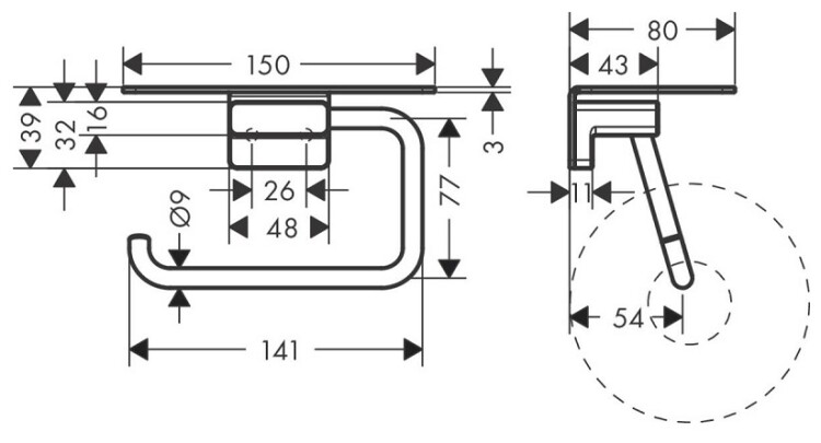Бумагодержатель, Hansgrohe, AddStoris, без крышки, с полочкой, ширина, мм-150, глубина, мм-80, высота, мм-87, тип установки-настенный, крепления в комплекте, цвет-хром Бумагодержатель, Hansgrohe, AddStoris, шгв 150*80*87, цвет-хром