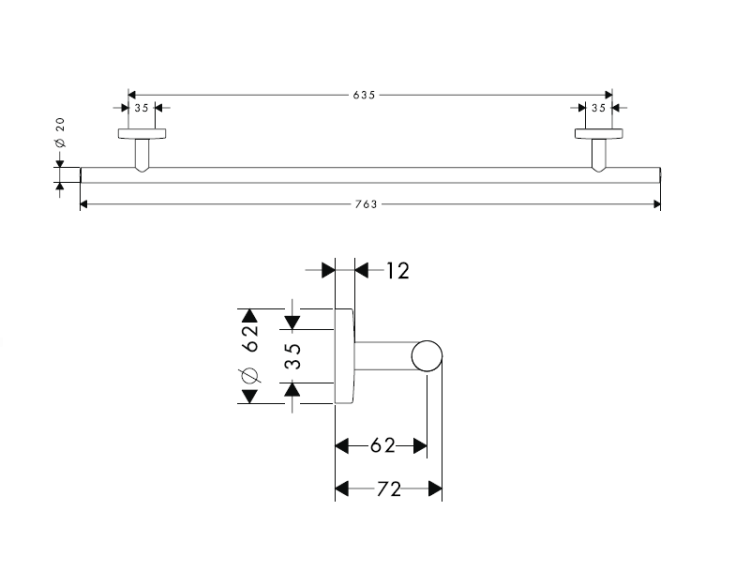 Полотенцедержатель, Hansgrohe, Logis, одинарный, ширина, мм-763, глубина, мм-72, высота, мм-62, настенный, материал-латунь, материал держателя-металл, крепеж-есть, цвет-хром Полотенцедержатель, Hansgrohe, Logis, шгв 763*72*62, цвет-хром