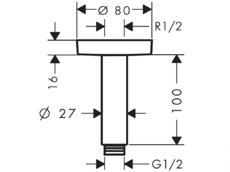 Держатель верхнего душа, Hansgrohe, вид-потолочный, вынос, мм-100, цвет-черный матовый Держатель верхнего душа, Hansgrohe, цвет-черный матовый