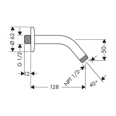 Держатель верхнего душа, Hansgrohe, вид-настенный, вынос, мм-128, цвет-хром, материал-латунь Держатель верхнего душа, Hansgrohe, цвет-хром