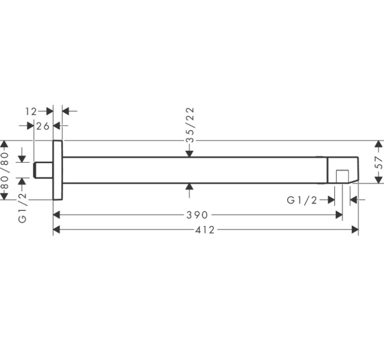 Держатель верхнего душа, Hansgrohe, Pulsify E, вид-настенный, вынос, мм-390, цвет-черный матовый Держатель верхнего душа, Hansgrohe, Pulsify E, цвет-черный матовый