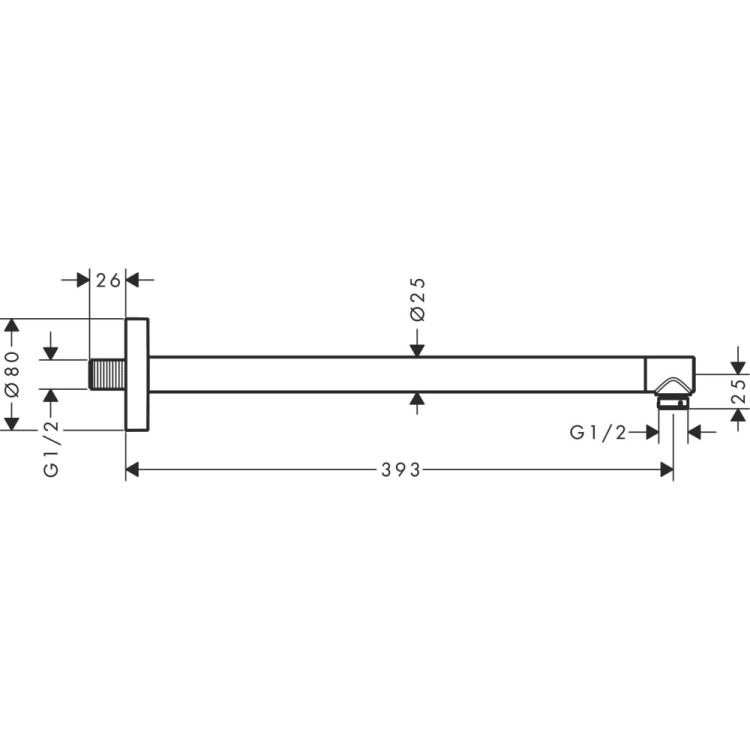 Держатель верхнего душа, Hansgrohe, Pulsify S, вид-настенный, вынос, мм-390, цвет-хром Держатель верхнего душа, Hansgrohe, Pulsify S, цвет-хром