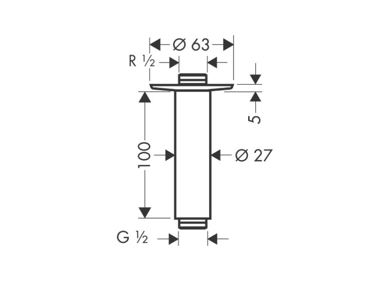 Держатель верхнего душа, Hansgrohe, Raindance, вид-потолочный, вынос, мм-100, цвет-полированное золото, материал-латунь, Ø стержня,мм-27, соединительная резьба G 1/2, розетка Держатель верхнего душа, Hansgrohe, Raindance, цвет-полированное золото