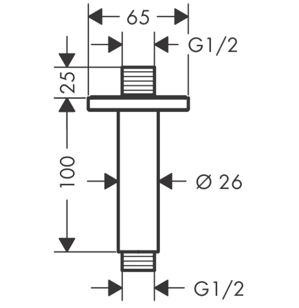Держатель верхнего душа, Hansgrohe, Vernis Shape, вид-потолочный, вынос, мм-100, цвет-черный матовый Держатель верхнего душа, Hansgrohe, Vernis Shape, цвет-черный матовый