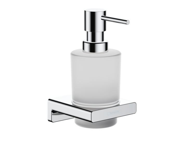 Дозатор для жидкого мыла, Hansgrohe, AddStoris, механический (нажимной), ширина, мм-81, глубина, мм-91, высота, мм-158, ёмкость(мл)-200, тип установки-настенный, материал колбы-стекло, цвет дозатора (держателя)-хром Дозатор для жидкого мыла, Hansgrohe, AddStoris, шгв 81*91*158, цвет-хром