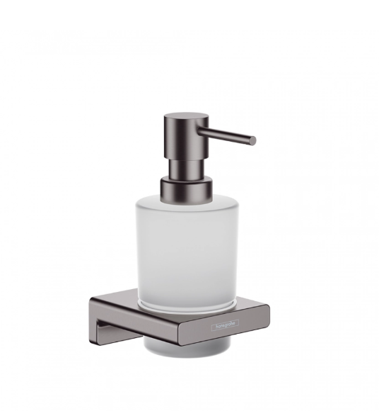 Дозатор для жидкого мыла, Hansgrohe, AddStoris, механический (нажимной), ширина, мм-81, глубина, мм-91, высота, мм-158, ёмкость(мл)-200, тип установки-настенный, материал колбы-стекло, цвет дозатора (держателя)-шлифованный черный хром Дозатор для жидкого мыла, Hansgrohe, AddStoris, шгв 81*91*158, цвет-шлифованный черный хром