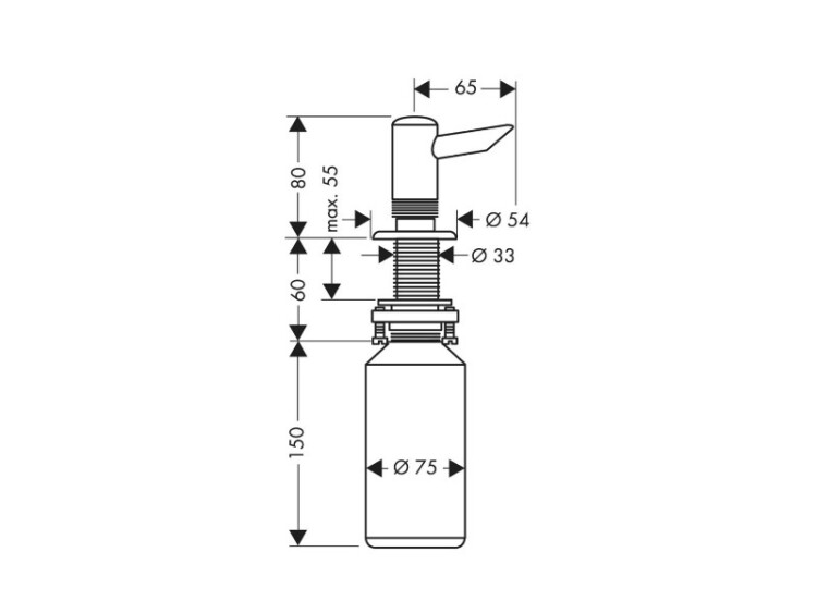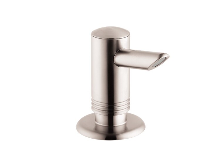 Дозатор для жидкого мыла или средства для мытья посуды, Hansgrohe, ширина, мм-54, высота, мм-80, ёмкость(мл)-300, тип установки-встраиваемый, материал-металл, цвет-сталь Дозатор для жидкого мыла, Hansgrohe, шв 54*80, цвет-сталь