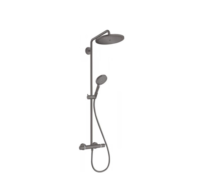 Душевая стойка, Hansgrohe, Croma Select S, смеситель-в комплекте, тип открывания воды-вентильный, тип регулирования воды-термостатический картридж, верхний душ-есть, форма верхнего душа-круглая, размер верхнего душа,мм-280, держатель верхнего душа-есть, вынос, мм-400, количество режимов верхнего душа-1, размер штанги, мм-1038, ручной душ-в комплекте, количество режимов ручного душа-3, шланг-есть, цвет-шлифованный черный хром Душевая стойка, Hansgrohe, Croma Select S, цвет-шлифованный черный хром