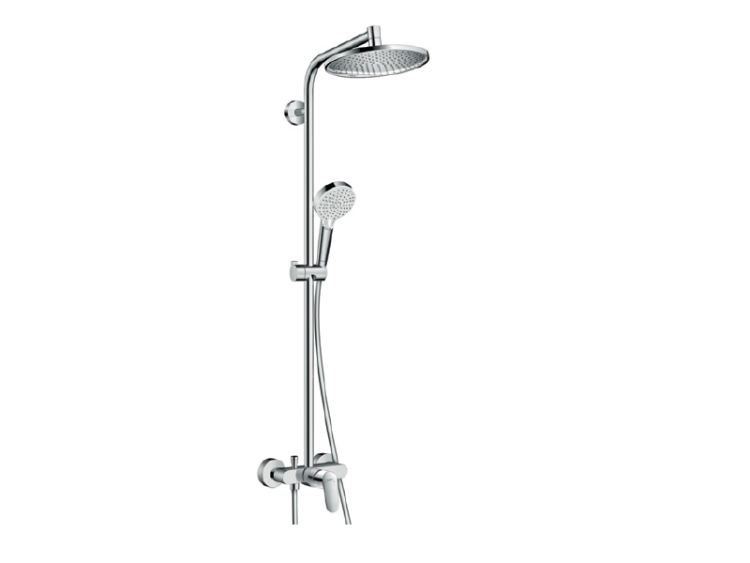 Душевая стойка, Hansgrohe, Crometta S, смеситель-есть, тип открывания воды-рычажный, тип регулирования воды-керамический картридж, верхний душ-есть, форма верхнего душа-круглая, размер верхнего душа-240*240, держатель верхнего душа-есть, вынос, мм-352, количество режимов верхнего душа-1, тип струи верхнего душа-Rain, размер штанги, мм-1024, ручной душ-есть, размер ручного душа-100, количество режимов ручного душа-2, тип струи ручного душа-Rain, Intense Rain, шланг-есть, размер шланга, мм-1600, цвет-хром Душевая стойка, Hansgrohe, Crometta S, цвет-хром