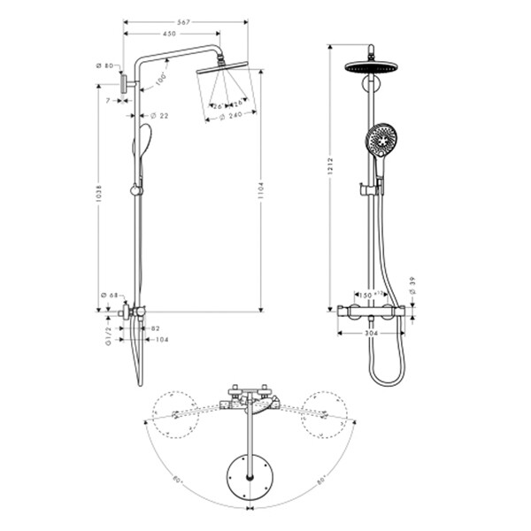 Душевая стойка, Hansgrohe, Raindance S, смеситель-есть, тип открывания воды-двухвентильный, тип регулирования воды-термостатический картридж, верхний душ-есть, форма верхнего душа-круглая, размер верхнего душа-240, держатель верхнего душа-есть, вынос, мм-460, количество режимов верхнего душа-1, тип струи верхнего душа-RainAir, размер штанги, мм-1083, ручной душ-есть, размер ручного душа-125, количество режимов ручного душа-3, тип струи ручного душа-Rain, RainAir, WhirlAir, шланг-есть, размер шланга, мм-1600, цвет-хром Душевая стойка, Hansgrohe, Raindance S, цвет-хром