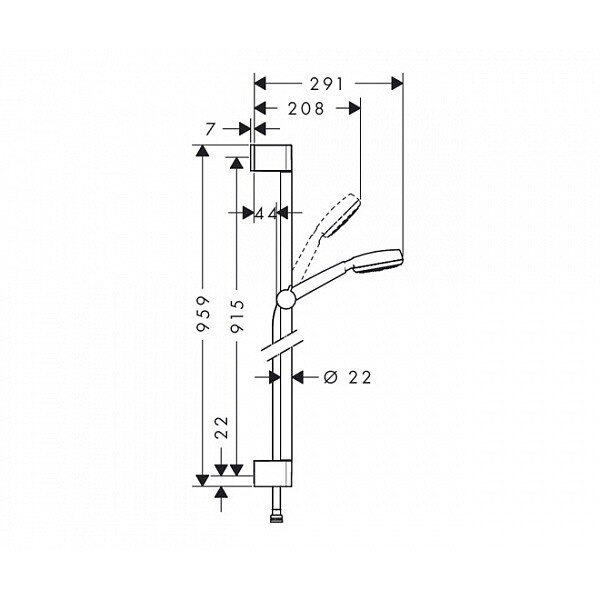Душевой гарнитур, Hansgrohe, Crometta, размер штанги, мм-900, размер шланга, мм-1600, диаметр ручного душа, мм-100, количество режимов-1, тип струи-Rain, угол наклона скольжения можно регулировать на 45°, хромированные настенные опоры из пластика, цвет-белый/хром Душевой гарнитур, Hansgrohe, Crometta, цвет-белый/хром