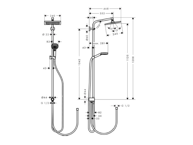 Душевой гарнитур, Hansgrohe, Crometta E, размер штанги, мм-1042, размер шланга, мм-1600, диаметр ручного душа, мм-100, количество режимов-2, тип струи-Rain, Intense Rain, комплектация-верхний душ, 1jet, Rain, штанга, ручной душ, держатель душа, цвет-хром Душевой гарнитур, Hansgrohe, Crometta E, цвет-хром