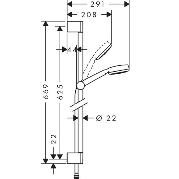 Душевой гарнитур, Hansgrohe, EcoSmart, размер штанги, мм-650, размер шланга, мм-1600, диаметр ручного душа, мм-100, количество режимов-1, тип струи-Rain, цвет-белый/хром Душевой гарнитур, Hansgrohe, EcoSmart, цвет-белый/хром