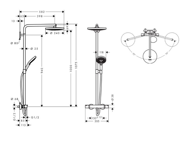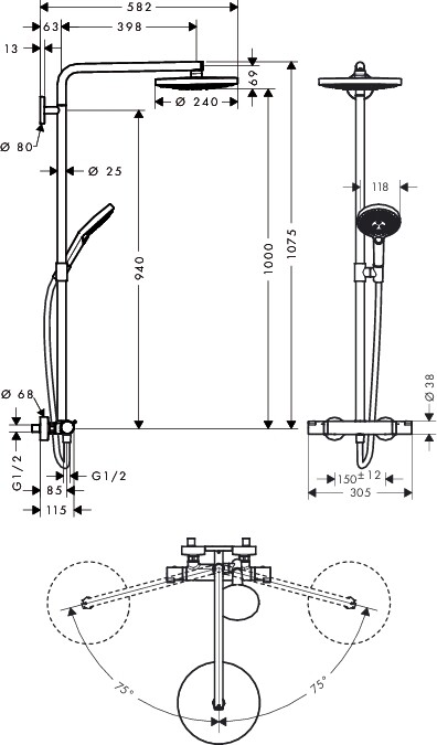 Душевая стойка, Hansgrohe, Raindance Select S, смеситель-есть, тип открывания воды-двухвентильный, тип регулирования воды-термостатический картридж, верхний душ-есть, форма верхнего душа-круглая, размер верхнего душа-240, держатель верхнего душа-есть, вынос, мм-398, количество режимов верхнего душа-2, тип струи верхнего душа-RainAir, Rain, размер штанги, мм-1075, ручной душ-есть, размер ручного душа-125, количество режимов ручного душа-3, тип струи ручного душа-Rain, RainAir, WhirlAir, шланг-есть, размер шланга, мм-1600, цвет-белый/хром Душевой гарнитур, Hansgrohe, Raindance Select S, цвет белый/хром