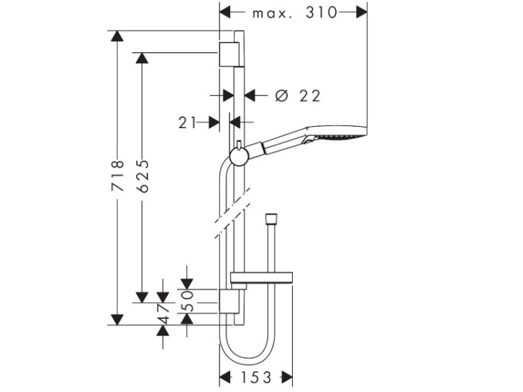 Душевой гарнитур, Hansgrohe, Raindance Select S, размер штанги, мм-650, размер шланга, мм-1600, диаметр ручного душа, мм-120, количество режимов-3, тип струи-PowderRain, Rain, WhirlAir , цвет-хром, комплектация-держатель ручного душа, регулируется в пределах 90°, поворачивается вправо и влево, перемещается вверх и вниз, мыльница Душевой гарнитур, Hansgrohe, Raindance Select S, цвет-хром