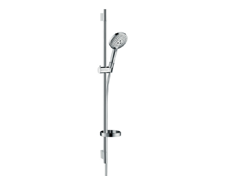 Душевой гарнитур, Hansgrohe, Raindance Select S размер штанги, мм-900, размер шланга, мм-1600, диаметр ручного душа, мм-120, количество режимов-3, тип струи-RainAir, Rain, WhirlAir, комплектация-мыльница, цвет-хром Душевой гарнитур, Hansgrohe, Raindance Select S, цвет-хром