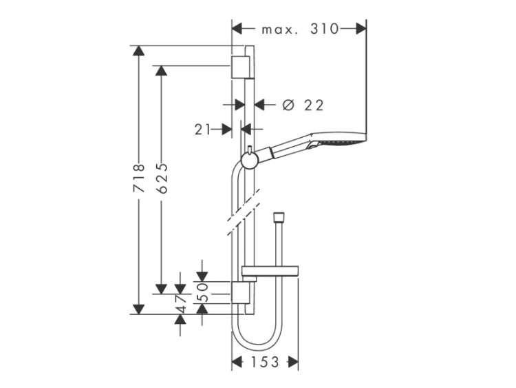 Душевой гарнитур, Hansgrohe, Raindance Select S, размер штанги, мм-718, размер шланга, мм-1600, диаметр ручного душа, мм-125, количество режимов-3, тип струи-Rain, RainAir, WhirlAir, переключение типов струи с помощью кнопки Select, со стороны душа упорный подшипник, предотвращающий перекручивание душевого шланга, держатель ручного душа регулируется в пределах 90°, поворачивается вправо и влево, перемещается вверх и вниз, хромированные настенные крепления из пластика, цвет-хром, в комплекте-мыльница Душевой гарнитур, Hansgrohe, Raindance Select S, цвет-хром
