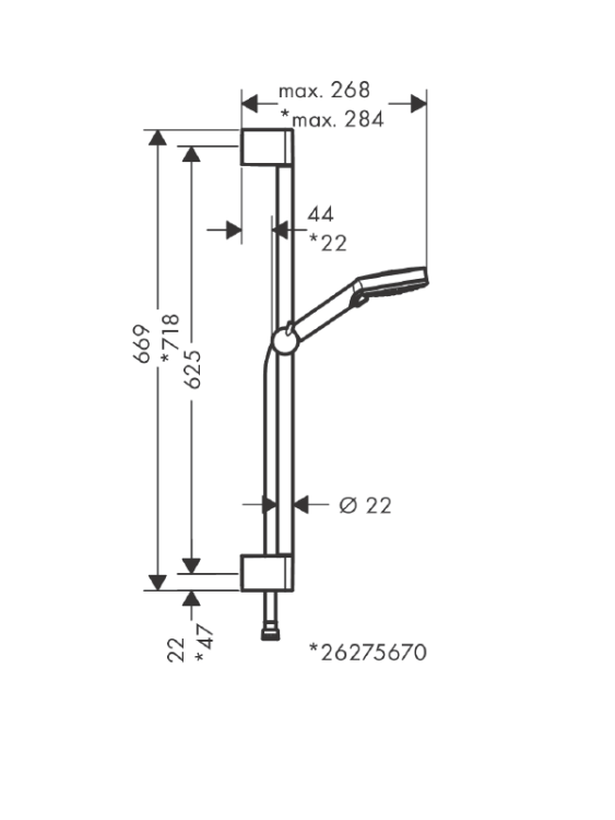 Душевой гарнитур, Hansgrohe, Vernis Blend, размер штанги, мм-669, размер шланга, мм-1500, количество режимов-2, цвет-хром Душевой гарнитур, Hansgrohe, Vernis Blend, цвет-хром