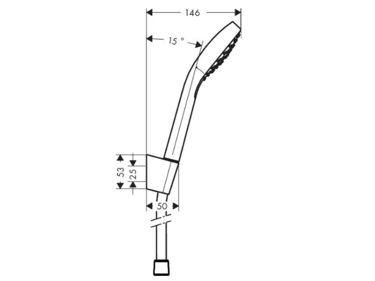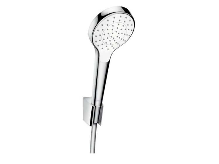 Душевой набор, Hansgrohe, Croma Select S, размер душевого диска, мм-110, форма лейки-круглая, количество режимов-1, тип струи-Rain, держатель для душа-есть, шланг-есть, длина шланга, мм-1600, цвет-белый/хром, со стороны душа упорный подшипник, предотвращающий перекручивание душевого шланга, хромированные настенные крепления из пластика Душевой набор, Hansgrohe, Croma Select S, цвет-белый/хром