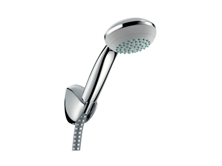 Душевой набор, Hansgrohe, Crometta, Mono, размер душевого диска, мм-85, форма лейки-круглая, количество режимов-2, тип струи-обычная, каскад, держатель для душа-есть, шланг-есть, длина шланга, мм-1250, цвет-хром Душевой набор, Hansgrohe, Crometta, цвет-хром