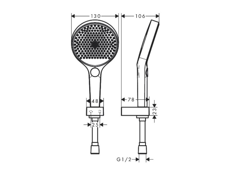 | Дополнительные функции | QuickClean — гибкие силиконовые вставки на форсунках для легкой очистки. 3 вида струй: PowderRain, Intense PowderRain, MonoSnap. Экономия воды с EcoSmart. Защита от перекручивание шланга. |