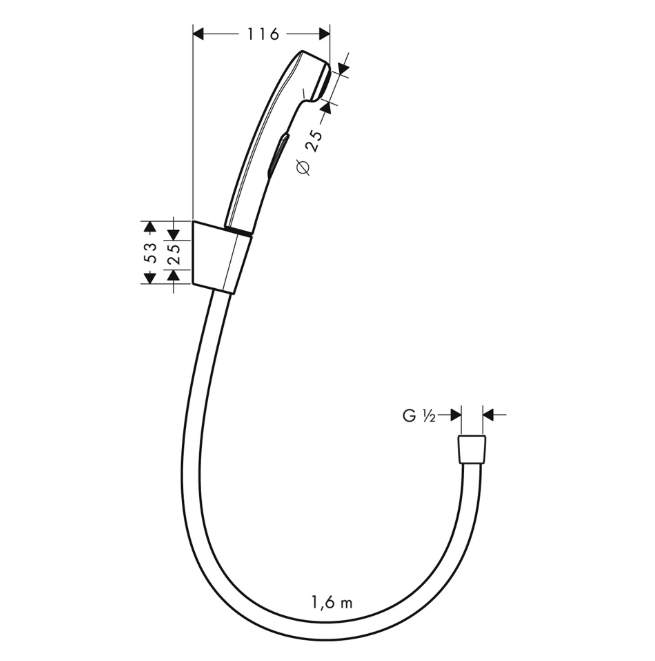Гигиенический душ, Hansgrohe, шланг-есть, длина шланга, мм-1600, держатель-в комплекте, материал-латунь, цвет-шлифованный черный хром Гигиенический душ, Hansgrohe, цвет-шлифованный черный хром