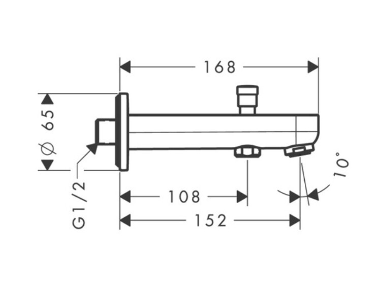 Излив, Hansgrohe, Metris S, тип установки-настенный, вынос излива, мм-152, стандарт подводки-1/2", цвет-хром, с переключателем на душ вакуумного типа, с розеткой, клапан обратного тока воды Излив, Hansgrohe, Metris S, цвет-хром