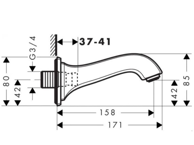 Излив, Hansgrohe, Metropol Classic, тип установки-настенный, вынос излива, мм-159, стандарт подводки-3/4", цвет-хром Излив, Hansgrohe, Metropol Classic, цвет-хром