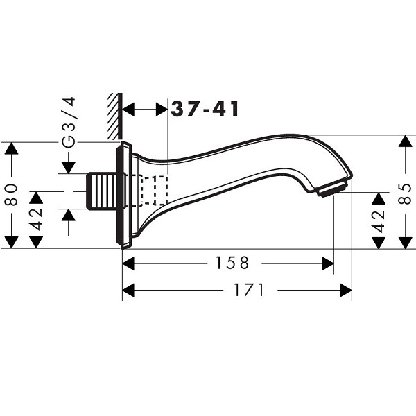 Излив, Hansgrohe, Metropol Classic, тип установки-настенный, вынос излива, мм-159, стандарт подводки-3/4", цвет-хром/золото Излив, Hansgrohe, Metropol Classic, цвет-хром/золото