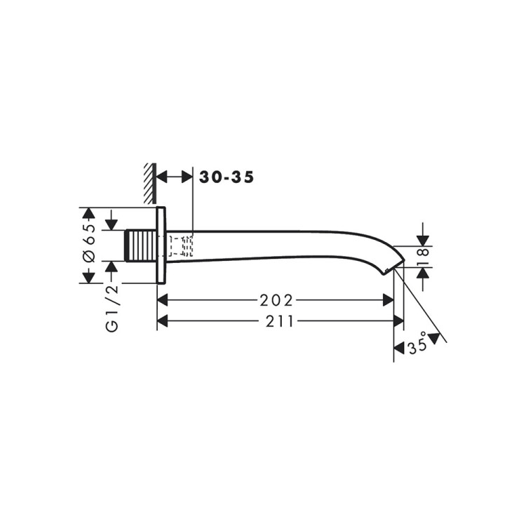 Излив, Hansgrohe, Vivenis, настенный, вынос излива, мм-202, стандарт подводки-1/2", цвет-хром Излив, Hansgrohe, Vivenis, цвет-хром