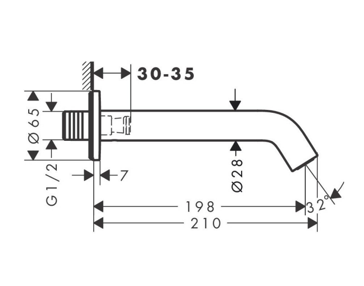 Излив, Hansgrohe, Tecturis S, для ванны, настенный, вынос излива, мм-198, стандарт подводки-1/2", цвет-бронза шлифованная Излив, Hansgrohe, Tecturis S, для ванны, цвет-бронза шлифованная