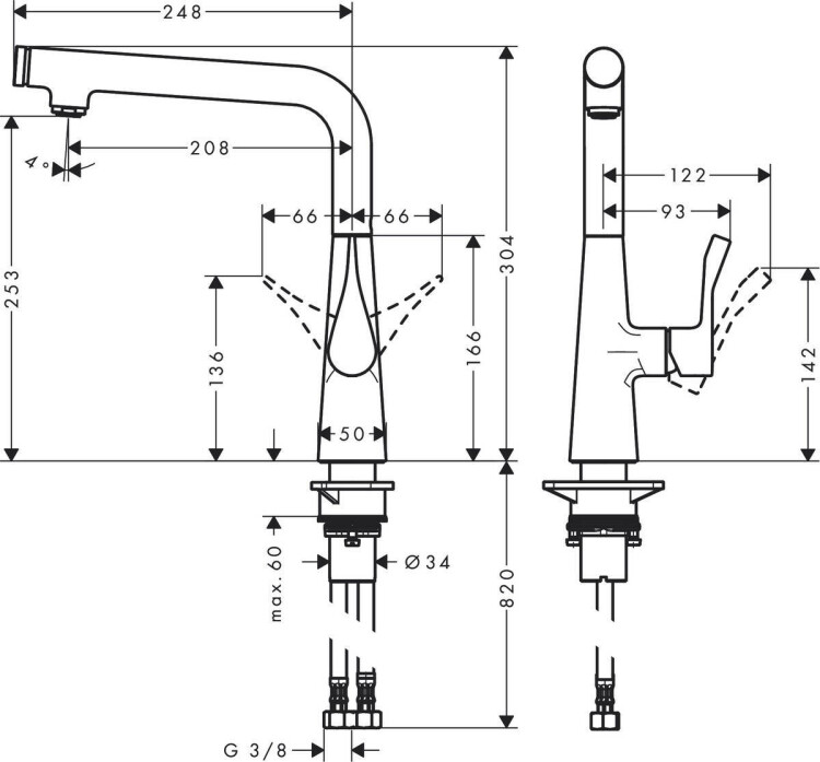 | Вынос, мм | 208 |
