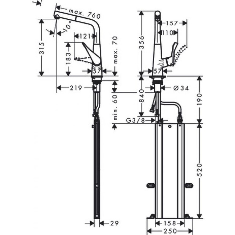 Смеситель для кухни, Hansgrohe, Metris M71, sBox, тип открывания воды-однорычажный, тип регулирования воды-керамический картридж, монтаж-на раковину/столешницу, отверстия для монтажа-1, высота, мм-356, вынос излива, мм-219, тип излива-выдвижной, поворотный на 110° или 150°, корпус для шланга, магнитная система крепления душа MagFit, тип подводки-гибкая, стандарт подвода воды-3/8", цвет-хром Смеситель для кухни, Hansgrohe, Metris M71, sBox, цвет-хром